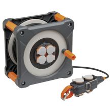 Удлинитель на катушке серии Garant G, с заземлением и защитой от влаги. 3 розетки, 40 метров, синий цвет.