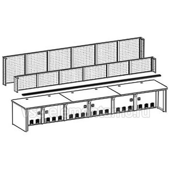 13 Защитные металлические экраны Металлические защитные экраны выполняют двойную функцию: защищают мониторы от механического воздействия и скрывают проводку, необходимую для подключения мониторов. Защитные экраны выполнены из перфорированного стального листа. Между собой экраны соединяются при помощи промежуточных соединительных металлических стоек сечением 50х50 мм. Экраны в серии представлены двумя высотами: для мониторов, установленных в 1 ряд по высоте — 450 мм, и для мониторов, установленных друг над другом – 850 мм.