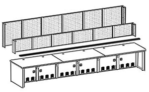 5 Металлокаркас. Рамы каркасные Между боковыми и промежуточными опорами устанавливаются металлические рамы при помощи высокопрочных винтовых соединений. Рамы устанавливаются в два контура: внешний и внутренний. Рама сварной конструкции в виде замкнутого контура изготавливается из металлической трубы сечением 25х25 мм. В раму устанавливаются распашные металлические двери. В составе серии предусмотрены каркасные рамы для прямых столов и угловых секций 22,5° и 90°.