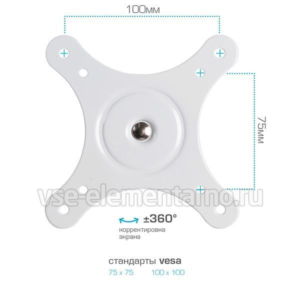 Настенный поворотно-наклонный кронштейн в белом цвете для небольших телевизоров и мониторов.