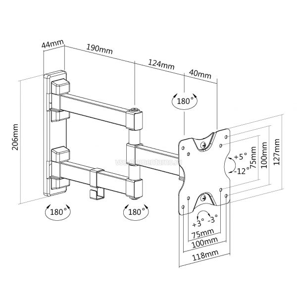 Настенный поворотно-наклонный кронштейн для телевизоров и мониторов с диагональю от 13 до 27 дюймов.