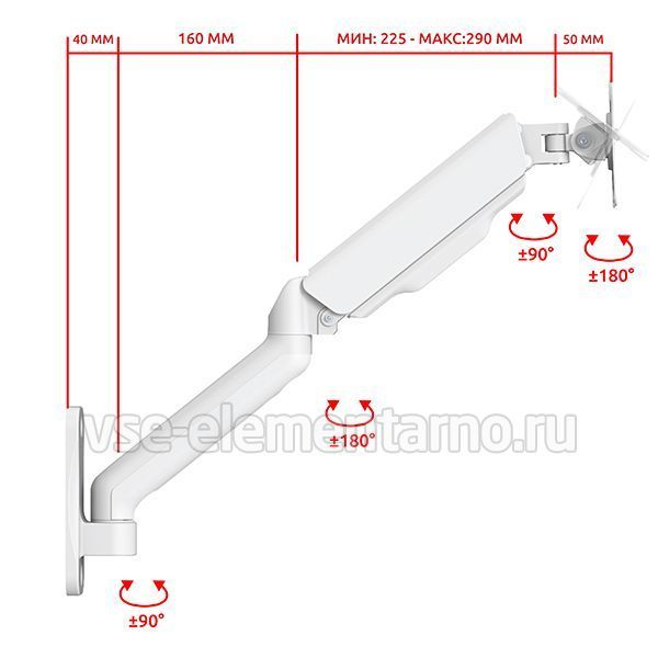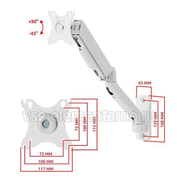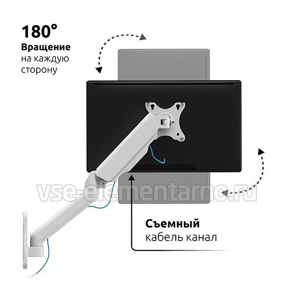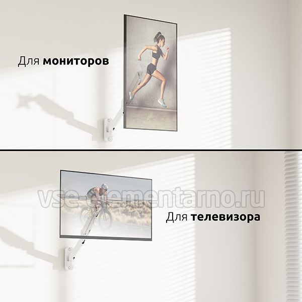 Настенный поворотно-наклонный кронштейн для телевизоров и мониторов с диагональю от 17 до 32 дюймов с возможностью регулировки по высоте.