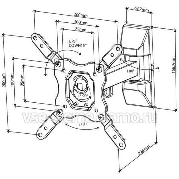 Настенный наклонно-поворотный кронштейн для телевизоров и мониторов с диагональю от 26 до 43 дюймов.