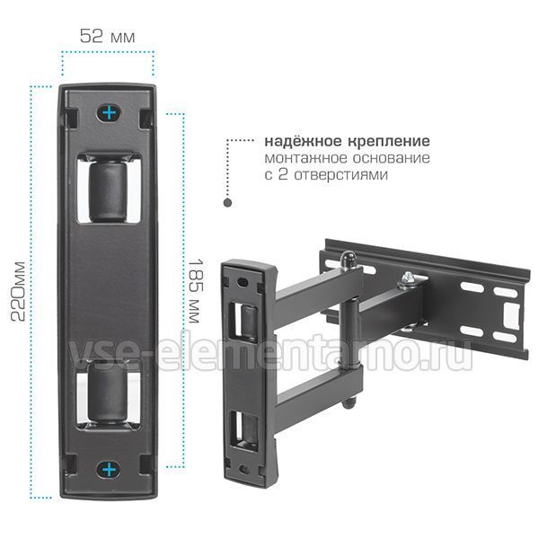 Настенный поворотно-наклонный кронштейн для телевизоров и мониторов от 26 до 43 дюймов.