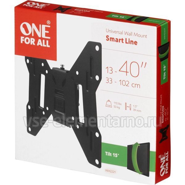 OFA WM2221 – наклонный кронштейн для телевизора или монитора с диагональю экрана от 13 до 40 дюймов (33-101 см) и максимальным весом до 50 кг.