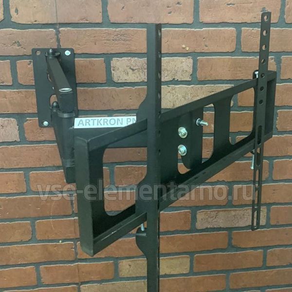 Кронштейн ARTKRON PN-V300 имеет надёжную стальную конструкцию. Пластина для монтажа к телевизору может регулировать наклон экрана вниз до 12 градусов.