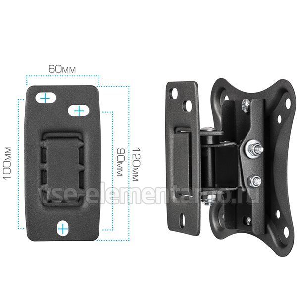 Настенный поворотно-наклонный кронштейн для телевизоров и мониторов с диагональю от 10 до 34 дюймов.