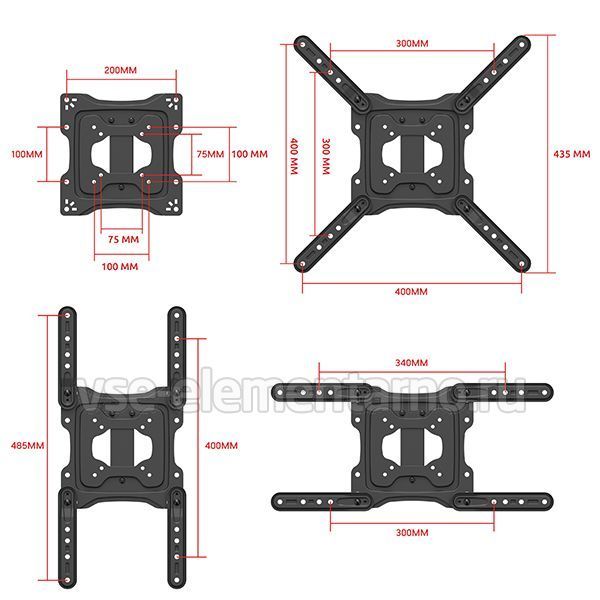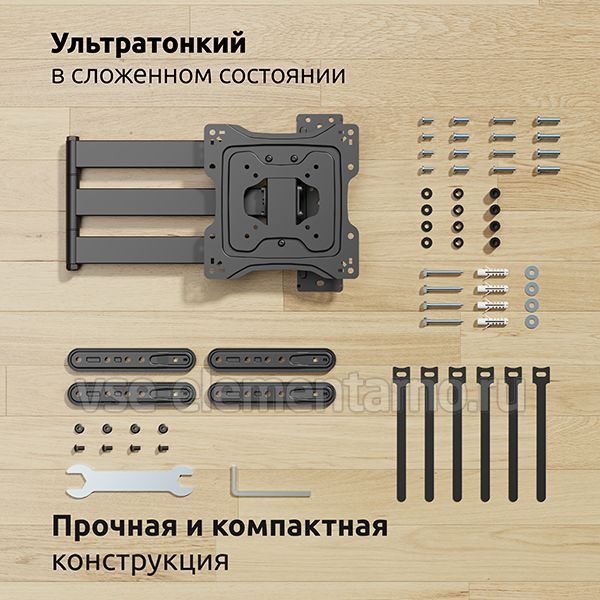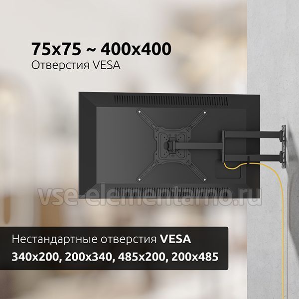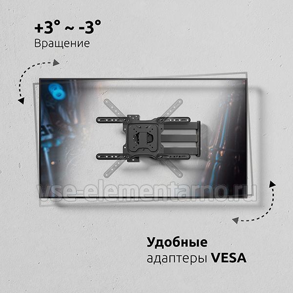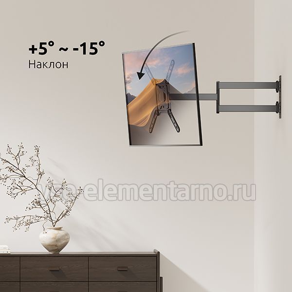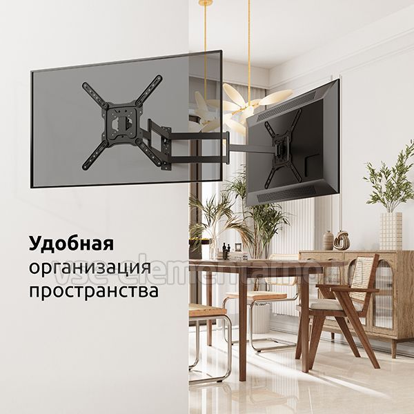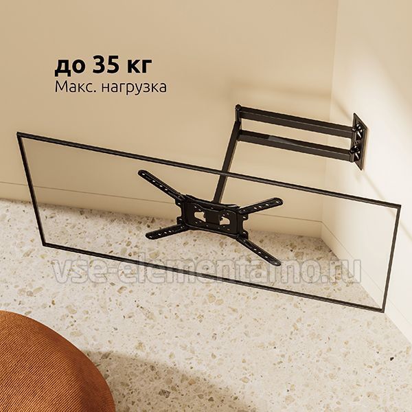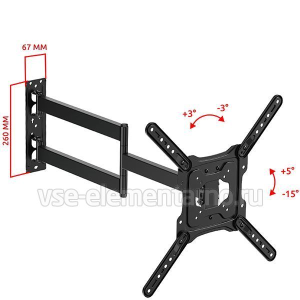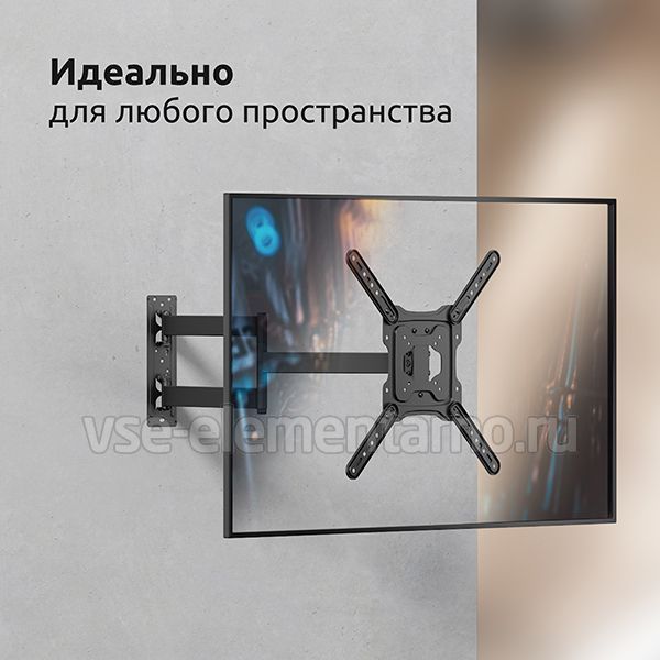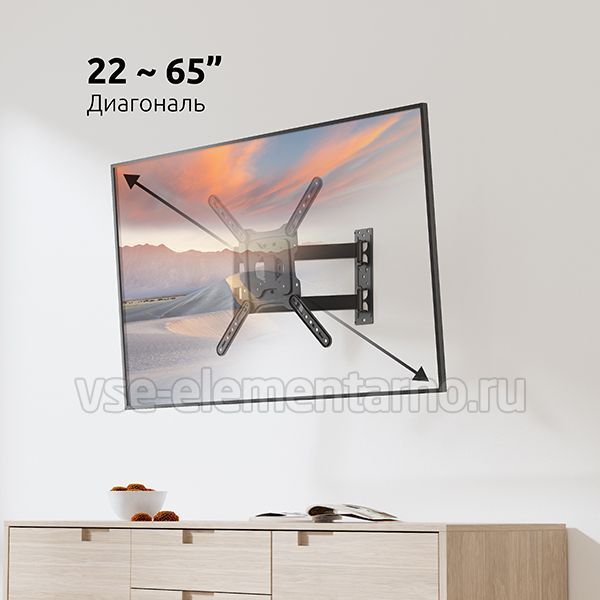 Настенный поворотно-наклонный кронштейн для телевизоров и мониторов с диагональю от 22 до 65 дюймов.