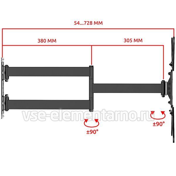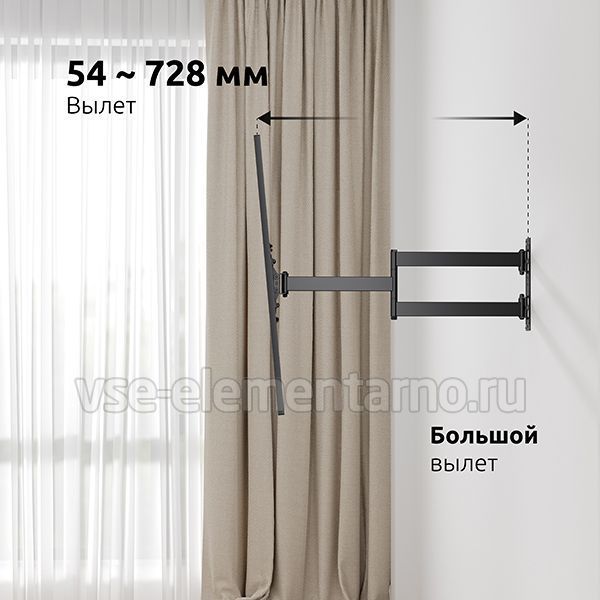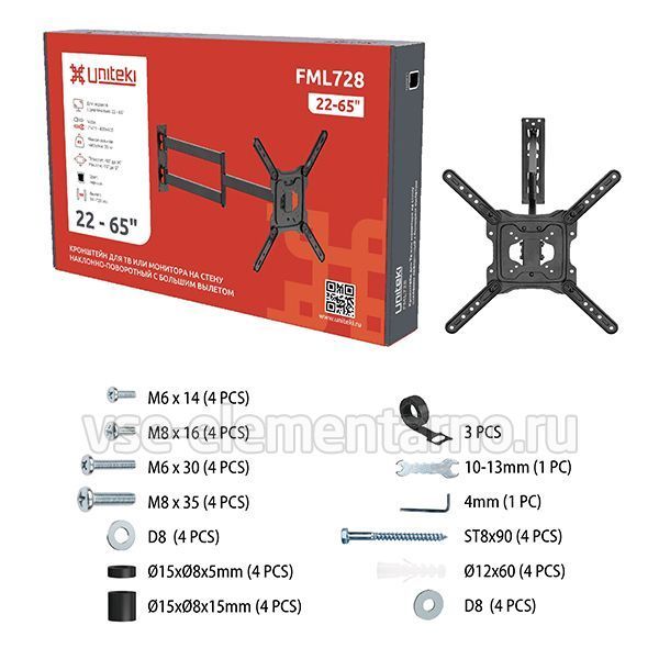 Наклонно-поворотный кронштейн Uniteki FML728 разработан для лучшей совместимости с большинством LCD/LED телевизоров и мониторов диагональю от 22 до 65 дюймов и максимальным весом 35 кг.