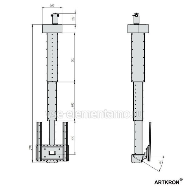 Потолочный моторизированный кронштейн ARTKRON Motors-2 с регулировкой высоты — это современное решение для комфортного и стильного размещения телевизора в любом помещении.