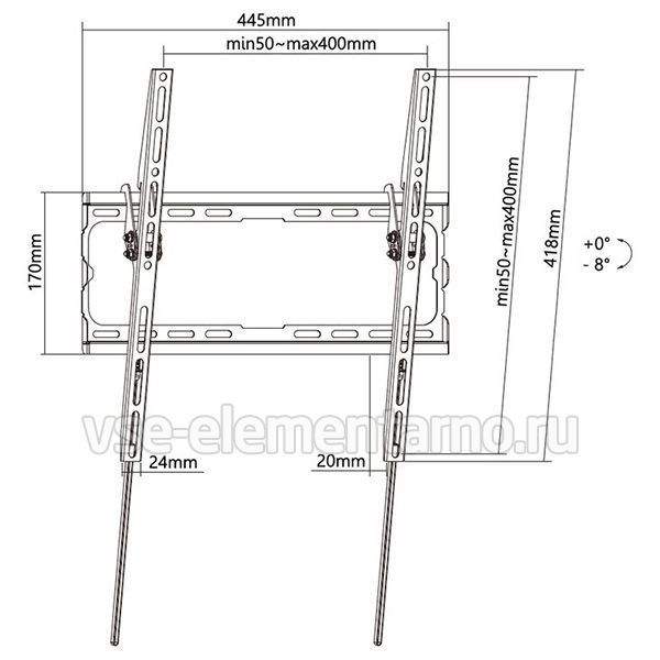 Кронштейн Digis DSM-3444T позволяет располагать телевизор вертикально на стене, либо задавать наклон до 8 градусов.