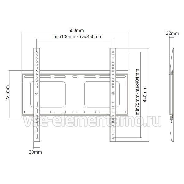 Ультратонкий настенный кронштейн для телевизоров с диагональю от 32 до 55 дюймов.