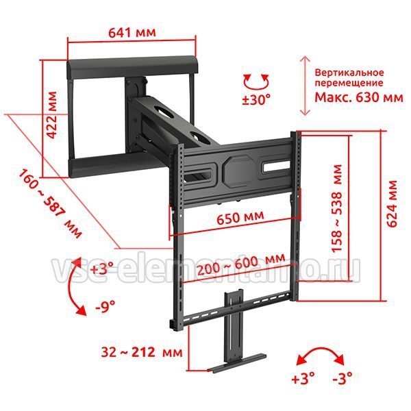 Кронштейн Uniteki FMG33FIREPLACE представляет собой наклонно-поворотный настенный кронштейн с углом наклона -9° (вниз) / +3° (вверх), поворот вправо/влево на 30° и предназначен для установки телевизоров над каминами.