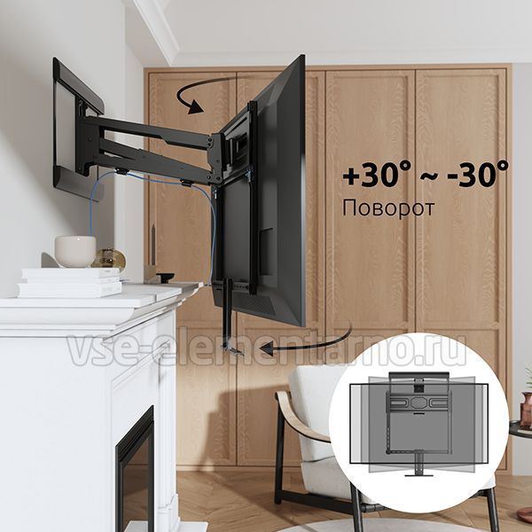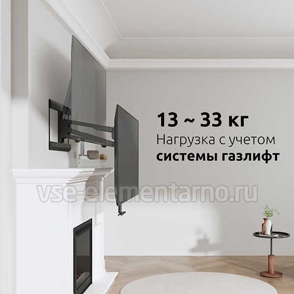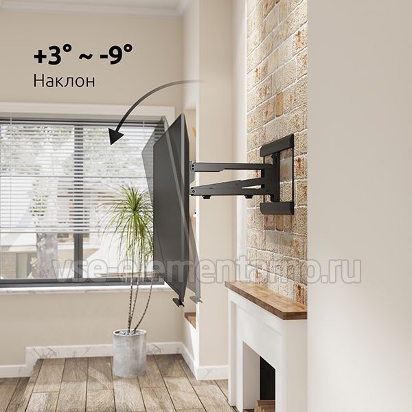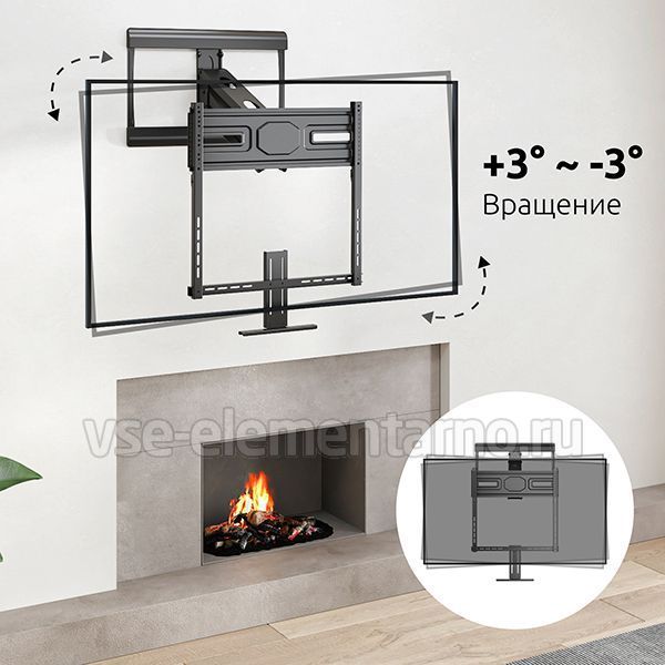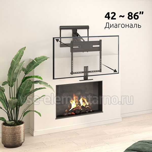 Настенный поворотно-наклонный кронштейн для установки телевизоров и мониторов над камином с диагональю от 42 до 86 дюймов.