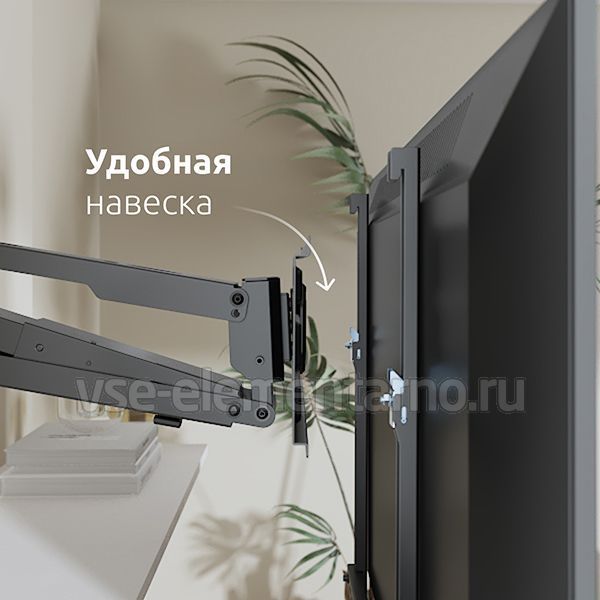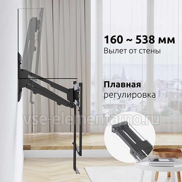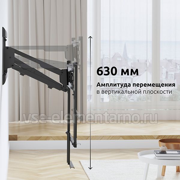 Газовая пружина обеспечивает плавное движение телевизора вверх и вниз в пределах 630 мм, а так же делает возможность фиксировать телевизор в любом промежуточном положении.