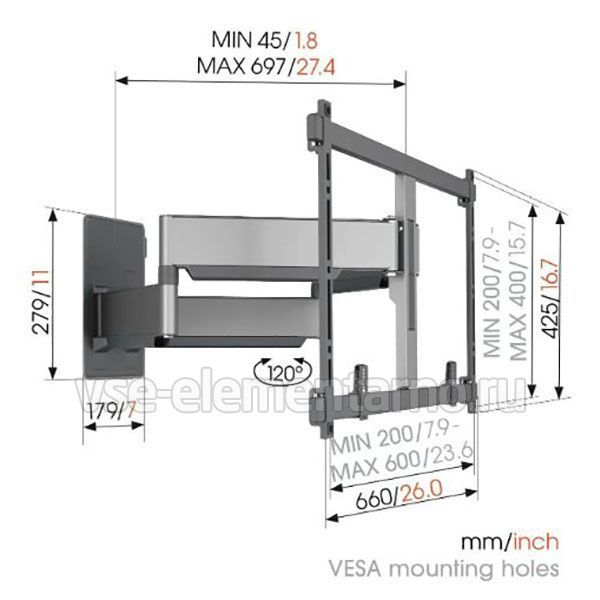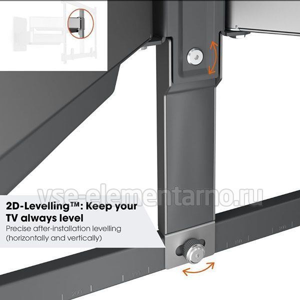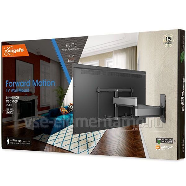 Ультратонкий поворотный кронштейн Vogels TVM 5855, предназначенный для телевизоров и мониторов с диагональю экрана от 55 до 100 дюймов и имеющих максимальный вес до 75 кг, позволяет выдвигать, поворачивать телевизор до 120°.