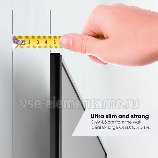 Всего 4,5 сантиметра расстояния между стеной и телевизором в сложенном виде. Фактически кронштейн Vogels TVM 5855 незаметен для глаза.