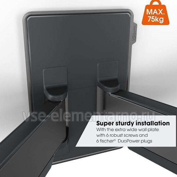 Настенный поворотно-наклонный кронштейн для телевизоров и мониторов с диагональю от 55 до 100 дюймов и весом до 75 кг.