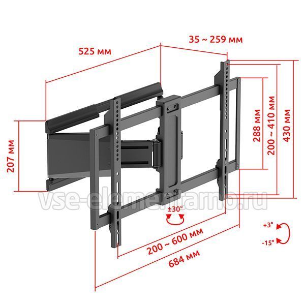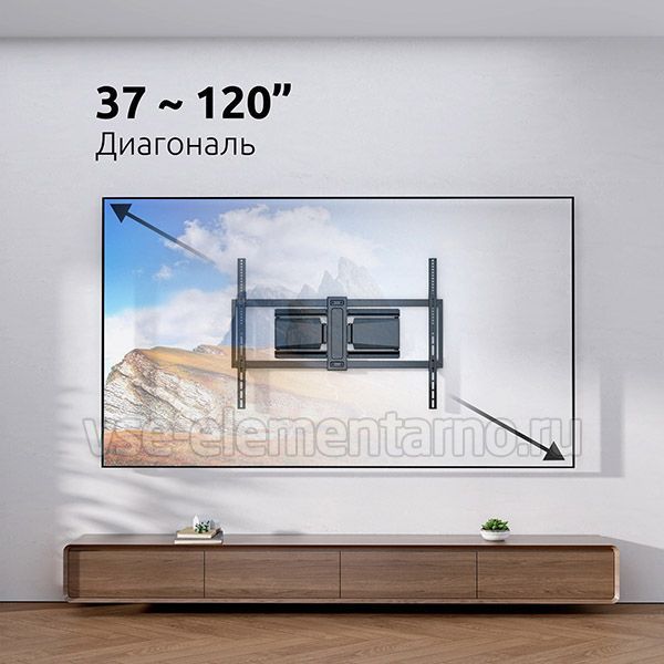 Настенный поворотно-наклонный кронштейн для телевизоров и мониторов с диагональю от 37 до 120 дюймов.