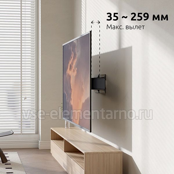 Всего 3.5 сантиметра расстояния между стеной и телевизором в сложенном виде. Фактически кронштейн Uniteki FM259USLIM незаметен для глаза.