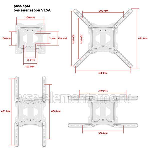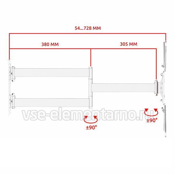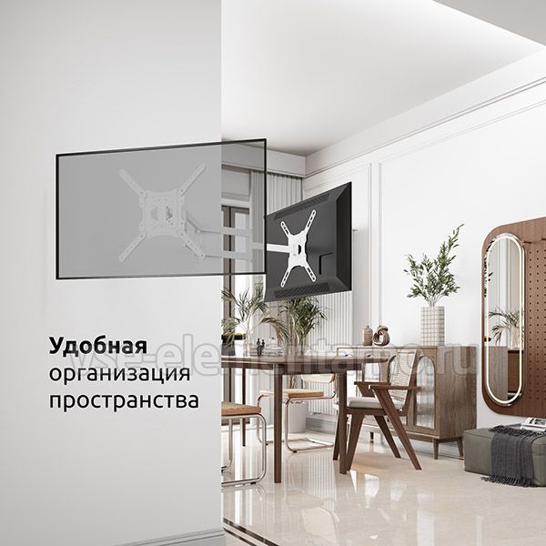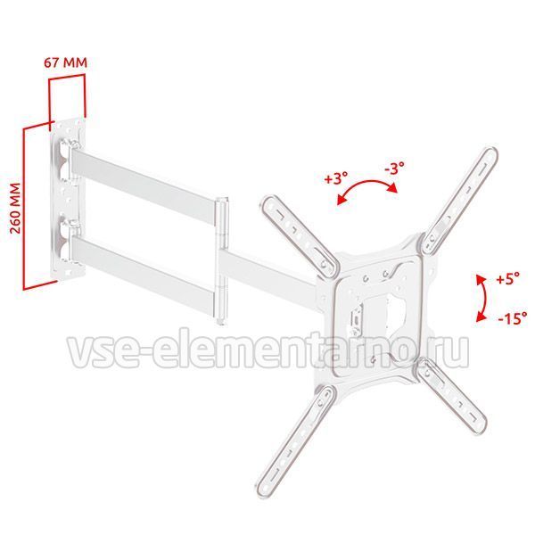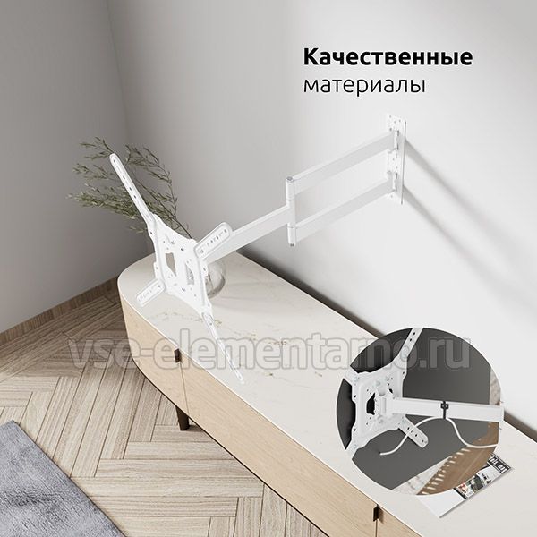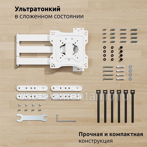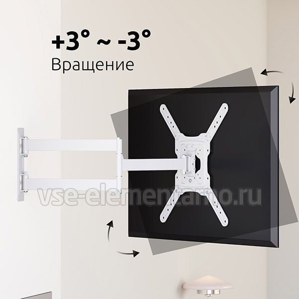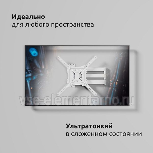 Настенный поворотно-наклонный кронштейн для телевизоров и мониторов с диагональю от 22 до 65 дюймов.