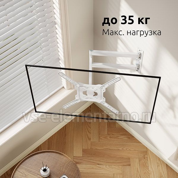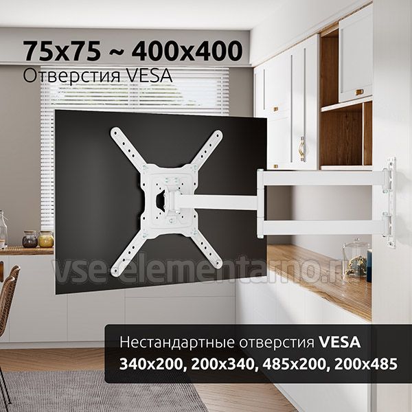 Наклонно-поворотный кронштейн Uniteki FML728 разработан для лучшей совместимости с большинством LCD/LED телевизоров и мониторов диагональю от 22 до 65 дюймов и максимальным весом 35 кг.