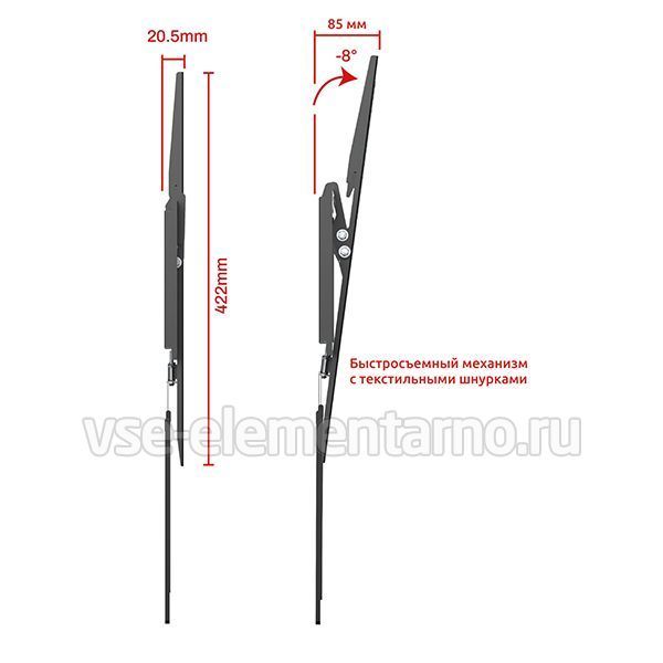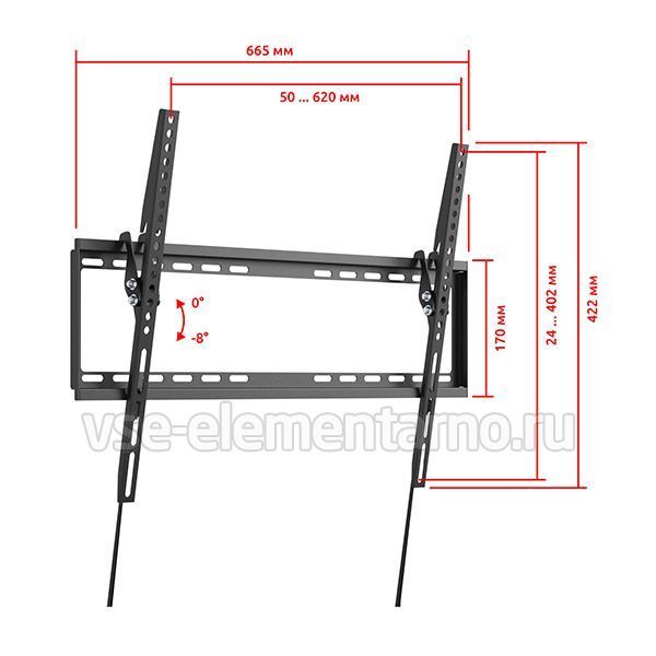 Кронштейн Uniteki TM1206B позволяет располагать телевизор вертикально на стене, либо задавать наклон до 8 градусов с плавной регулировкой.