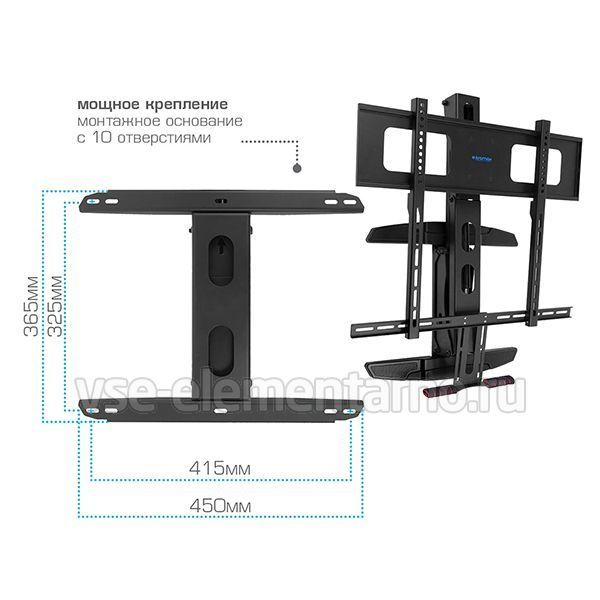 Кронштейн Kromax Atlantis-99 имеет увеличенное основание по размеру. Такое основание сконструировано для равномерного распределения нагрузки на стену и на кронштейн. Нагрузка на кронштейн от 7,5 до 35 кг.