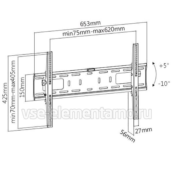 Настенный кронштейн с возможностью наклона для телевизоров с диагональю от 37 до 75 дюймов.