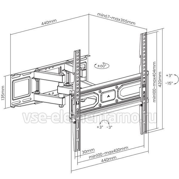 Настенный поворотно-наклонный кронштейн для телевизоров и мониторов с диагональю от 32 до 55 дюймов.