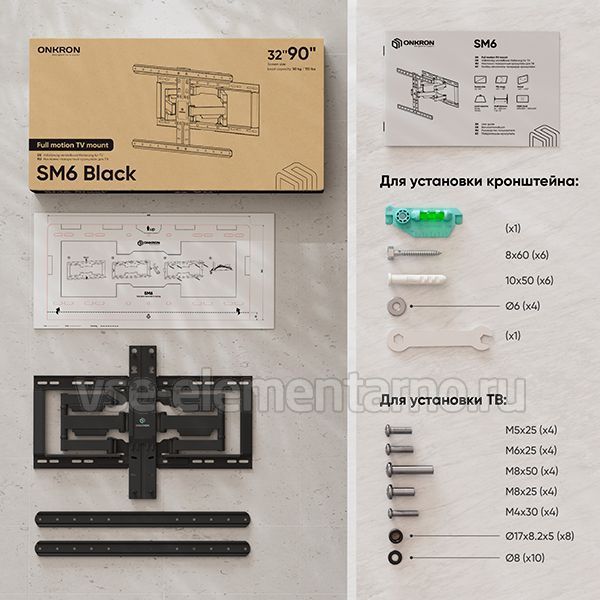 Настенный наклонно-поворотный кронштейн Onkron SM6B предназначен для телевизоров с диагональю от 32 до 90 дюймов. Конструкция кронштейна имеет широкий диапазон регулировки положения и перемещения телевизора, исключительную плавность движений.