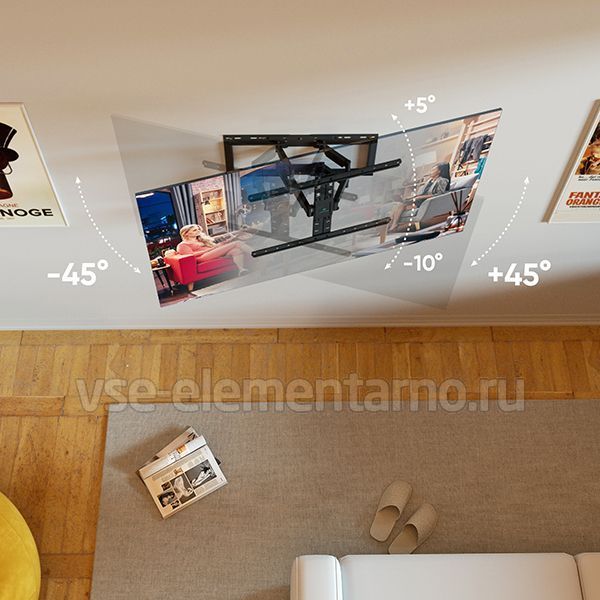 Настенный поворотно-наклонный кронштейн для телевизоров и мониторов с диагональю от 32 до 90 дюймов.