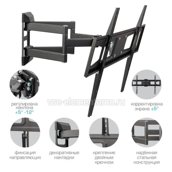 Настенный поворотно-наклонный кронштейн для телевизоров и мониторов с диагональю от 32 до 75 дюймов весом до 45 кг.