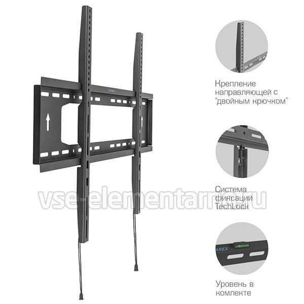 Широкое настенное основание с увеличенными размерами, для равномерного распределения нагрузки на кронштейн, простая установка при помощи водяного уровня.