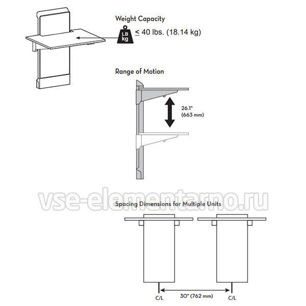 Рекомендованная нагрузка Ergotron 24-804-S894, WorkFit Elevate Sit-Stand Wall Desk: 18 кг.