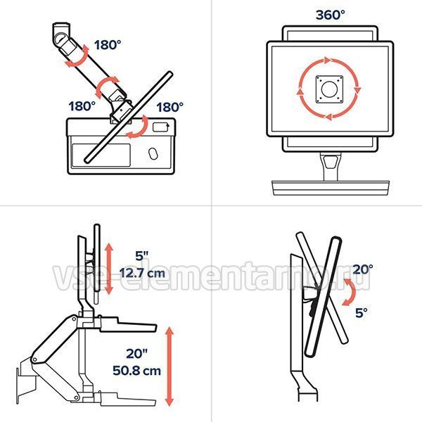 Степени свободы Ergotron CareFit Combo Arm Keyboard & Monitor Mount (45-621-251):