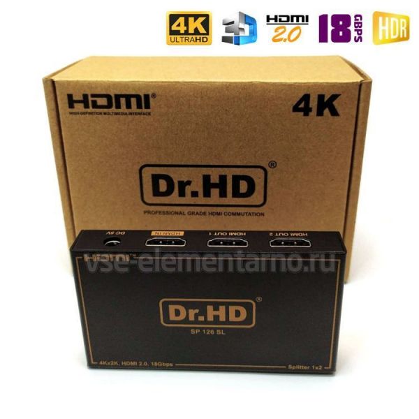 HDMI 2.0 сплиттер 1х2 Dr.HD SP 126 FX с поддержкой HDCP 2.2, полоса частот 18Gbps и 4K разрешения.