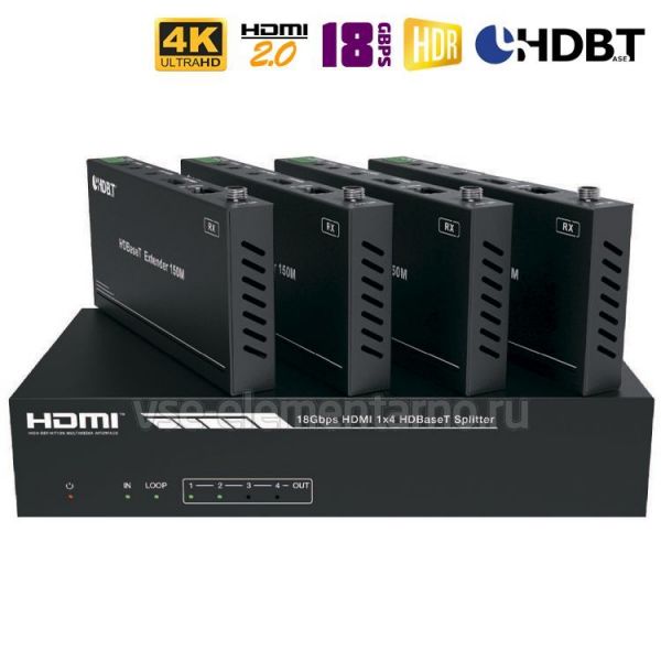 HDMI делитель 1x4 с удлинением по витой паре (UTP) Dr.HD SC 147 HBT150
