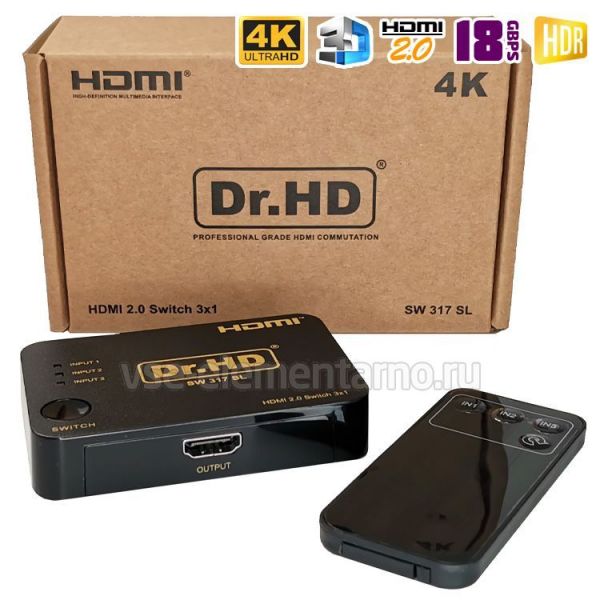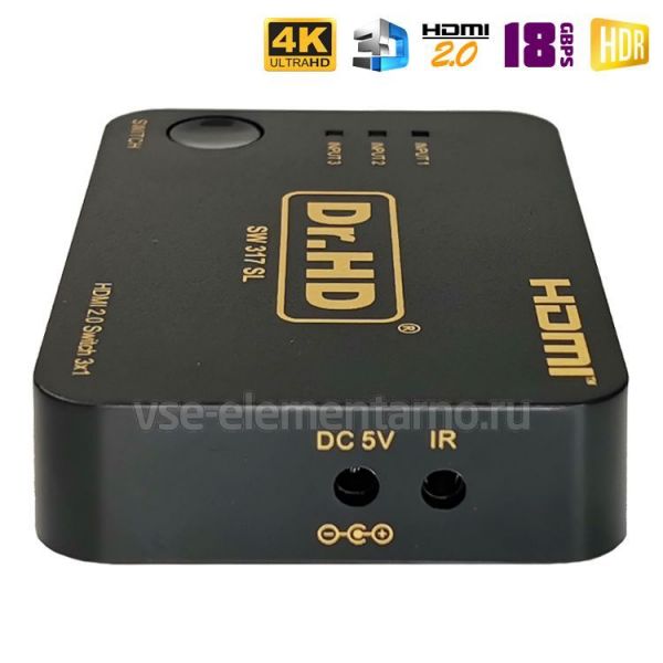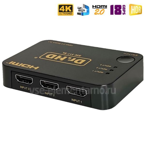- HDMI 2.0 переключатель 3х1 Dr.HD SW 317 SL-поддержка HDMI 2.0 означает полную совместимость с Ultra HD 4K.