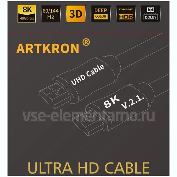 Особенности HDMI-HDMI кабеля ARTKRON 8K HDMI 2.1 (1.5 м):
