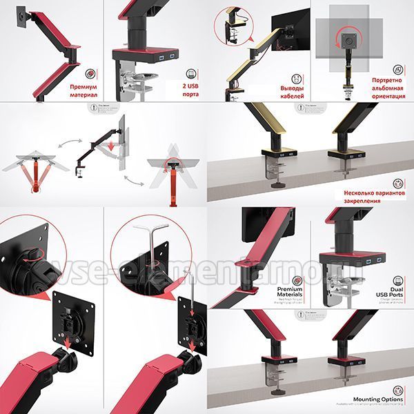 Кронштейн Uniteki FMGT101RDR позволяет легко и плавно изменять ориентацию монитора вертикально / горизонтально за счёт газового амортизатора, который настраивается под вес любого монитора. Монитор дополнительно можно наклонять, поворачивать и вращать на 360°. Комплектом предусмотрено 2 х USB порта.