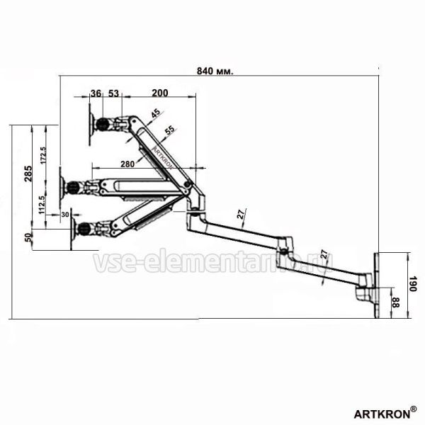 Настенный кронштейн ARTKRON ART-W11 рассчитан для мониторов со стандартом 75х75, 100х100 мм., весом от 3 до 10 кг. радиусом изгиба монитора от 4000R до 1800R. Кронштейн ART-11 поможет вам организовать рабочее место за счёт возможности придания монитору множества степеней свободы.