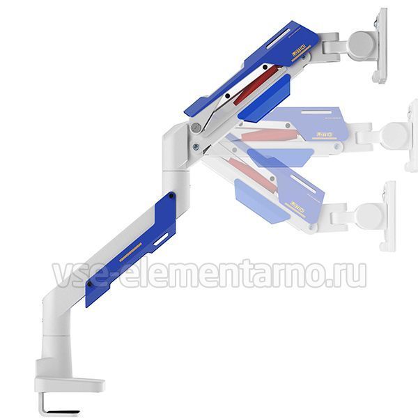 Настольный наклонно-поворотный кронштейн с регулировкой высоты для мониторов с диагональю экрана от 24 до 57 дюймов и весом до 30 кг.