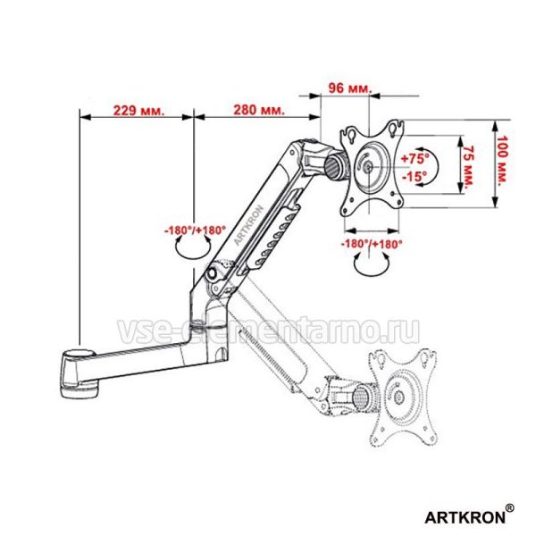Дополнительное крепление ARTKRON ART-940 предназначен для кронштейнов ARTKRON ART-K, Держатель рассчитан для мониторов со стандартом 75х75, 100х100 мм., весом от 3 до 10 кг. радиусом изгиба монитора от 4000R до 1800R. Крепление ARTKRON ART-940 поможет вам организовать рабочее место за счёт возможности придания монитору множества степеней свободы.