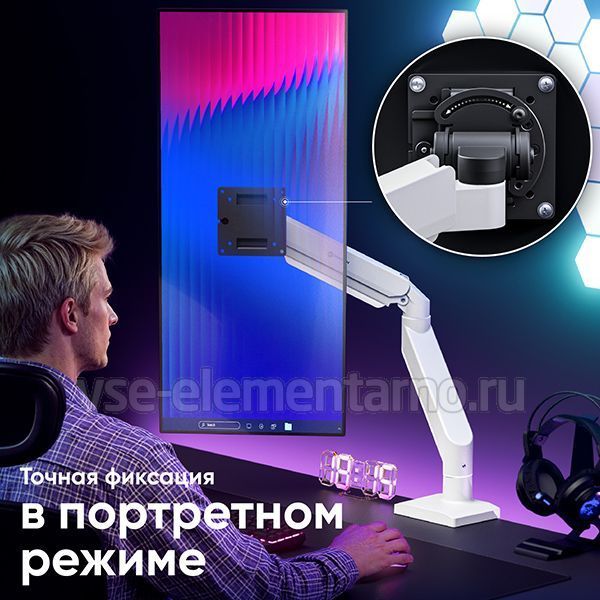 Кронштейн Onkron G110-BW не оставит никого равнодушным, не только потому, что подходит для всех мониторов и телевизоров, диагональю от 15" до 55" и весом от 2 кг до 25 кг (изогнутый монитор от 2 до 20 кг), что позволяет легко и просто передвигать монитор в любых плоскостях, и даже менять его положение по вертикали! Всё это благодаря газовой пружине, располагающейся внутри корпуса кронштейна, именно она может зафиксировать монитор в любом положении и менять его не прилагая существенных усилий. Поворачивайте монитор вокруг своей оси на 360°, наклоняйте вверх и вниз, придвигайте или удаляйте от себя, поднимите монитор повыше или опустите пониже – всё это может наш кронштейн Onkron G110-BW.