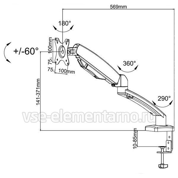 Настольный наклонно-поворотный кронштейн с регулировкой высоты для мониторов с диагональю до 32 дюймов.