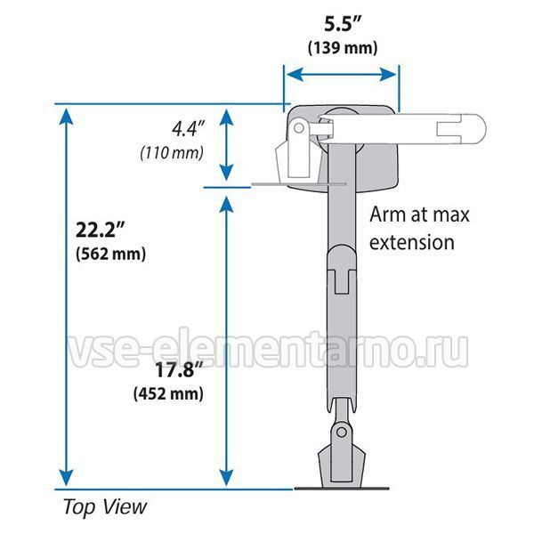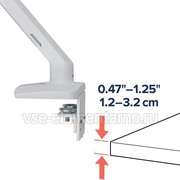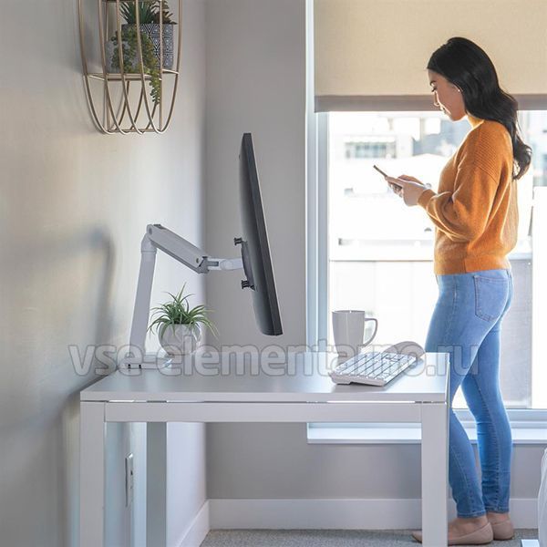 За счёт подъема монитора вверх, а также отвода соединительных кабелей в специальный канал, значительная часть рабочего стола освобождается. Вы можете "сложить" звенья крепления, придвинув его практически вплотную к стене.
