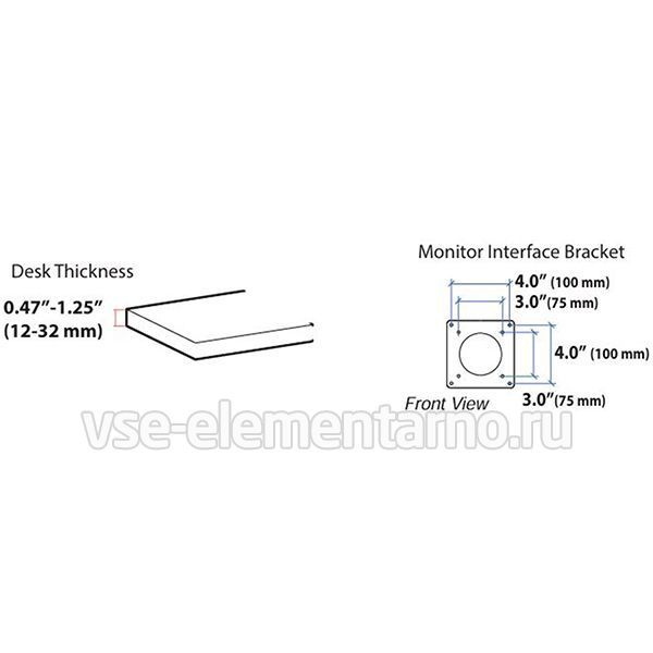 Настольный поворотно-наклонный кронштейн c регулировкой по высоте для монитора или телевизора с диагональю до 32 дюймов включительно.