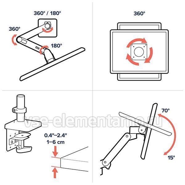 Степени свободы крепления Ergotron LX Pro Desk Monitor Arm (45-682-293):