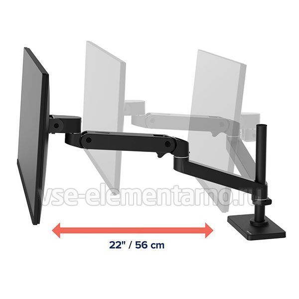 За счёт подъема монитора вверх, а также отвода соединительных кабелей в специальный канал, значительная часть рабочего стола освобождается. Вы можете "сложить" звенья крепления, придвинув его практически вплотную к стене.